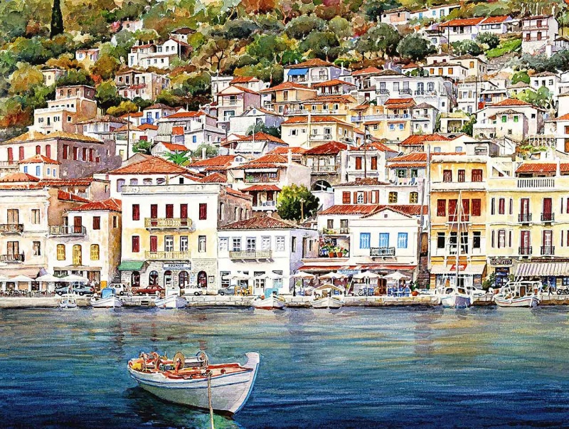 Пантеліс Зографос (Pantelis Zografos), син і онук художників, народився в Афінах і жив у Греції аж до 1971-го року, а потім переїхав у США. Там художник живе і донині. Акварелі з видами Греції — це данина Батьківщині і людям, які сформували його як особистість. У кожній картині помітна ностальгія за рідним краєм. Можливо, саме вона допомагає художнику створювати настільки яскраві і пронизливі полотна.