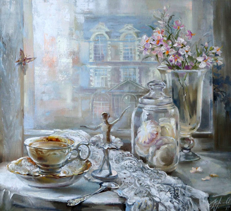 Улюблена тема єкатеринбурзькій художниці Оксани Кравченко — краса і свіжість квітів. В її роботах домінують прозорий світло, пастельні кольори і загальний настрій ніжності і непідробного щастя.