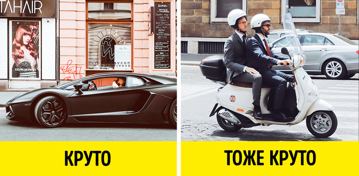 Який сенс заробляти мільйони на великий будинок або круту машину, якщо хтось інший бере те ж саме в оренду не за мільйони, а тисячі. З боку не видно, хто заробив, а хтось орендував, — обидва володіють одним і тим же. Так що на нас більше не діють гасла «Ти можеш все!», тому що ми чуємо в них інший зміст: «Ти можеш більше. Більше працювати і більше купувати».