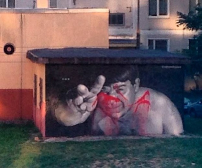 Але протягом місяця малюнок кілька разів обливали фарбою, і художники відновлювали зображення. Однак хуліганом бути легше, ніж художником. Так що цю "битву" творці програли.