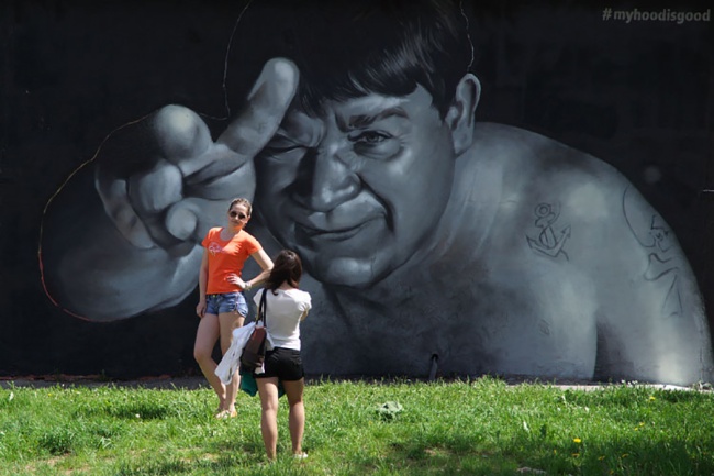 Одну з будок міста прикрасив портрет актора Євгенія Леонова в ролі Доцента з радянської кінокомедії «Джентльмени удачі». Малювала картину відома стріт-арт-команда HoodGraff.
