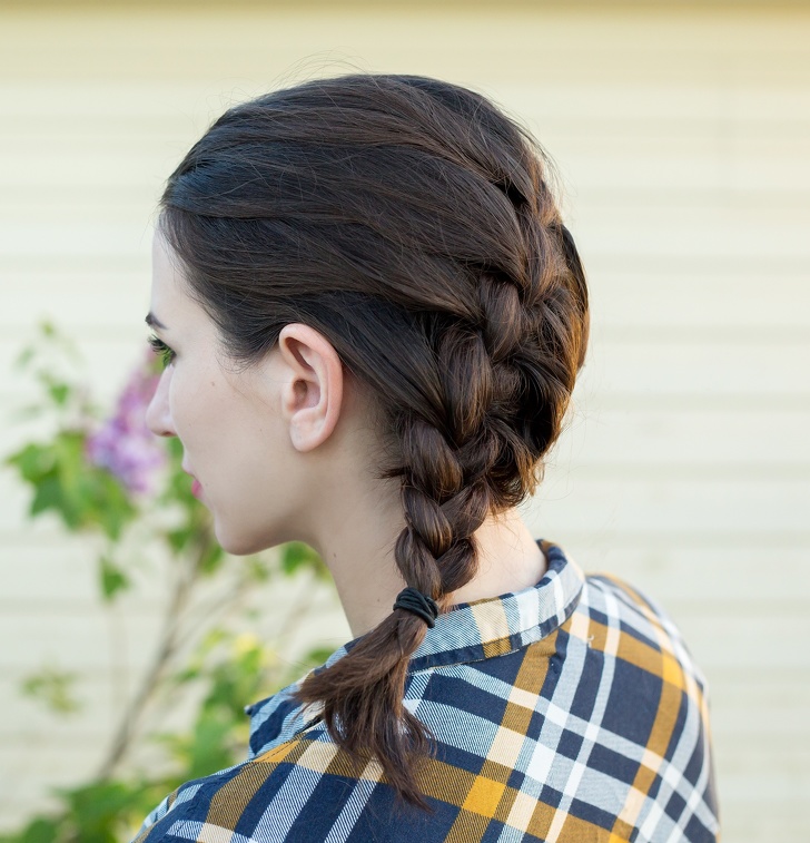 Моя голова відверто брудна, і, щоб приховати це, я використовувала сухий шампунь. Це альтернатива повноцінному миття. Сухий шампунь створює оболонку навколо жирного волосся, в результаті якийсь час голова буде здаватися чистою. Але все ж я не зважилася залишити волосся розпущеним і заплела косу. Лайфхак: чим товщі і більш недбало плетіння, тим краще воно приховує несвіжість волосся. З цією зачіскою я вирушила в спортзал — дуже зручно, нічого не заважає.