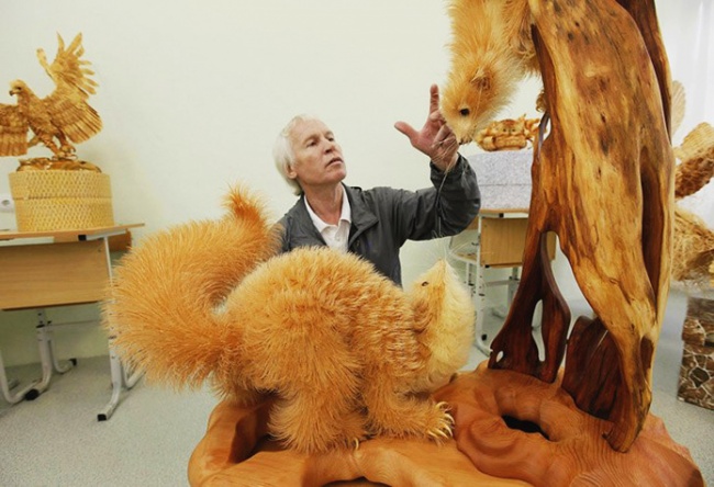 Шкільний вчитель з села Кажани Красноярського краю Сергій Бобков створює дивовижні скульптури із дерев'яної стружки.