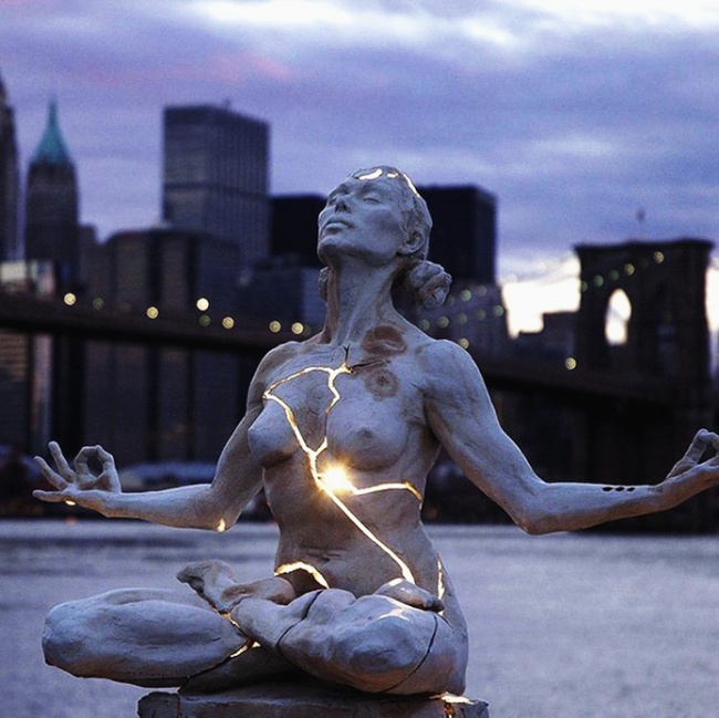 Скульптура Пейдж Бредлі «Розширення» являє собою двометрову композицію з світиться постаменту, на якому в позі лотоса сидить оголена жінка.