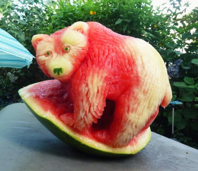 Ведмідь, вирізаний з кавуна.