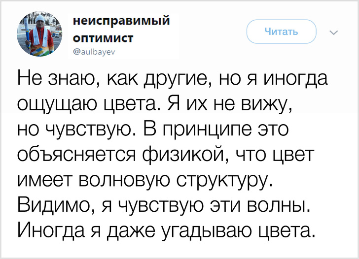 - У сліпого людини загострюються інші почуття. Він може чути і звертати увагу на ті звуки, на які здорові навіть не звернуть увагу. Незрячий точніше перетворює звуки і запахи в картинку в голові.