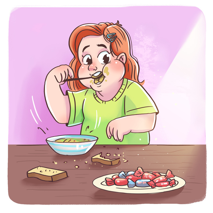 Солодощі були для мене як заборонене і дуже бажаний плід. Тепер-то я розумію, що причина цього в неправильних харчових звичок, які виховували в мені старші. Ну наприклад: на столі суп, який я більше не хочу, а на іншому його кінці — улюблена цукерка. Ні б перелити суп назад в каструлю або залишити його до вечері, але сестра «дресирує» мене: «Ось коли доїси, отримаєш солодке. З'їж ложку, цукерка стане ближче». І з кожною ложкою супу десерт наближався...