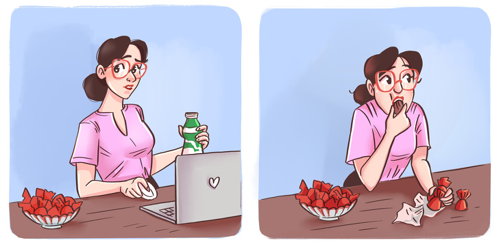 Якщо клялася домашнім сидіти на дієті, але зривалася, я ховала обгортку від цукерки глибше в сміттєве відро, ніби доказ. Якщо я бачила в інтернеті статтю про те, як відмовитися від солодкого, пролистывала її без великого інтересу, адже хто в здоровому розумі і добрій пам'яті буде відмовлятися від тістечкок і тортиків назовсім? Тим більше я. Адже якщо я не з'їм з ранку шоколадку або тортик, у мене весь день болить голова. Саме тому і болить, вважала я.