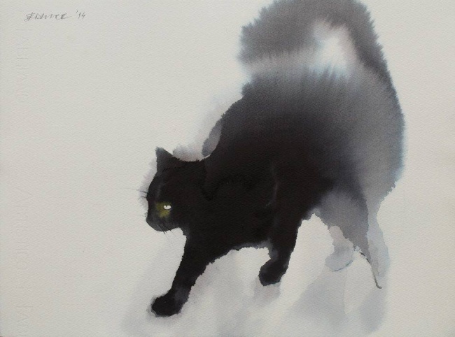 Сербський митець Андрій Пеновац дуже любить малювати аквареллю. Малює він багато чого: будинку, побутові сценки та інше. Але найбільше задоволення він отримує, коли береться за чарівних чорних котів на мокрому папері.