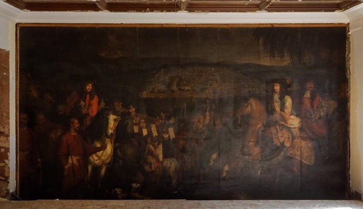 Під час підготовки до відкриття модного будинку Oscar de la Renta недалеко від Єлисейських полів було виявлено полотно. На ньому зображені одягнені по моді XVII століття придворні, які в'їжджають в Єрусалим. Мистецтвознавці встановили, що картину написав Арно де Вуэз в 1674 році.