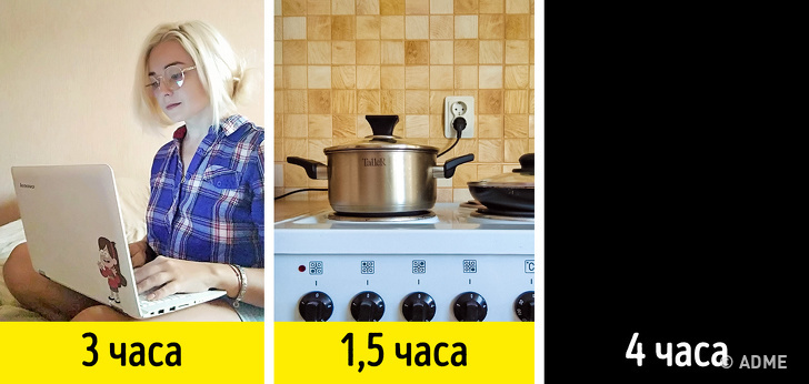 Наприклад, на написання чернетки однієї статті у той день у мене пішло 3 години. На приготування вечері з кількох страв — трохи менше півтора годин. А ось на що пішло 4 години?