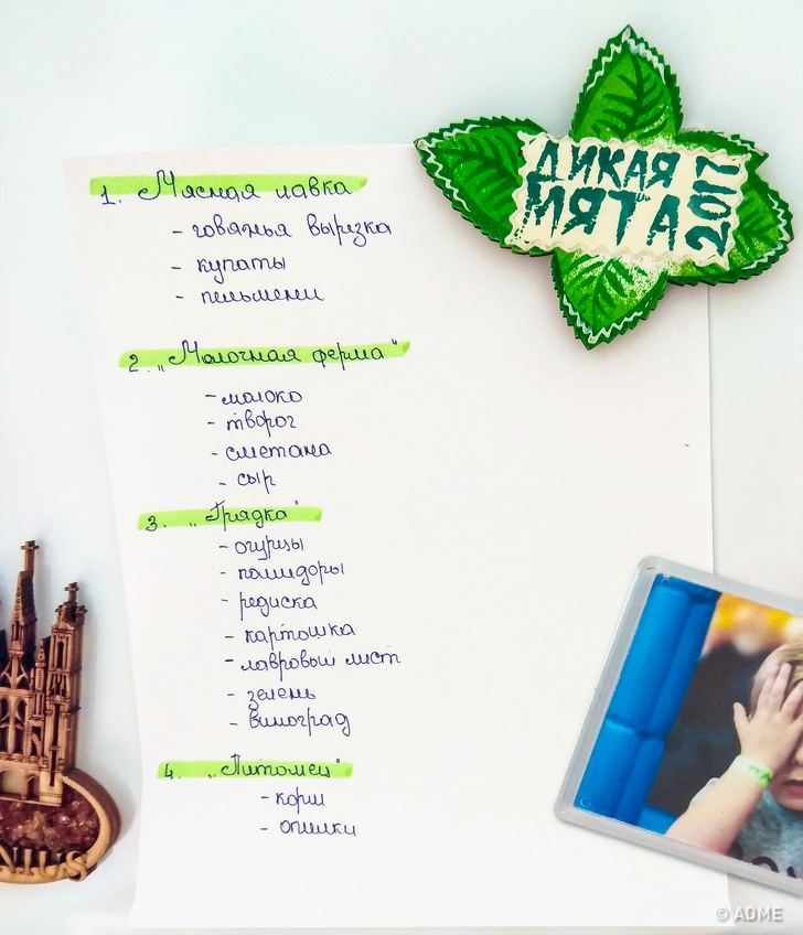 Тепер, складаючи список покупок, я записую і магазини, в яких продаються потрібні мені продукти. В даному випадку вони виділені зеленим.