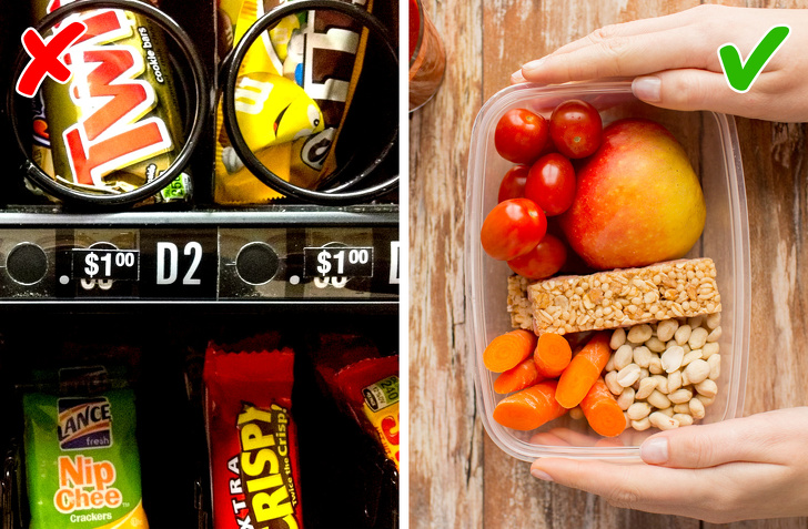 Останнім часом стало популярним встановлювати в офісах різні автомати з кавою, всілякими напоями та солодощами. І цілком природно, що кожному, хто почне регулярно навідуватися в обідню перерву до такого автомату, відмовитися від звички їсти щось солодке буде проблематично. Тому, якщо у вас в офісі стоїть такий автомат, краще зайдіть перед роботою в магазин і запасіться для перекусу фруктами або горіхами, а не біжіть в обід до цього джерела шкідливих солодощів.