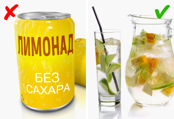 Часто в продуктах з позначкою «без цукру» містяться цукрозамінники, такі як мальтоза, декстроза, фруктоза, глюкоза, галактоза, лактоза, кукурудзяний сироп, і вони, на жаль, не допоможуть позбутися залежності від солодкого. Дослідження показали, що вони, навпаки, викликають ще більше бажання з'їсти що-небудь отаке. Тому, прийшовши в кафе або магазин, не купуйте газовану воду з написом «sugar free». Адже написи, що свідчать про відсутність цукру, частіше всього лише маркетинговий хід.