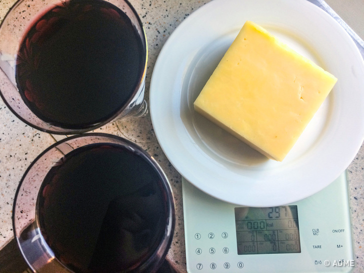 Як проводити. Варіантів сирно-винного дня існує декілька, я зупинилася на класиці: 300 г твердого сиру і близько 500 мл вина. Я вибрала червоне сухе, незважаючи на мою любов до полусладкому, щоб обмежити доступ цукру, і сир чеддер.