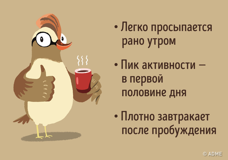 В інтернеті є безліч порад про те, як навчитися вставати в 4 ранку, щоб заробляти мільярд на день. Я навіть пару раз ставила над собою експерименти, чим неабияк помучила свій організм: я дуже довго не могла включити мозок і налаштуватися на роботу, вдень нестерпно хилило в сон, а бадьорість приходила тільки під вечір. Шляхом самобичування і самокатування я майже змирилася з безнадією випадку, але сучасні вчені змогли врятувати мою самооцінку.
