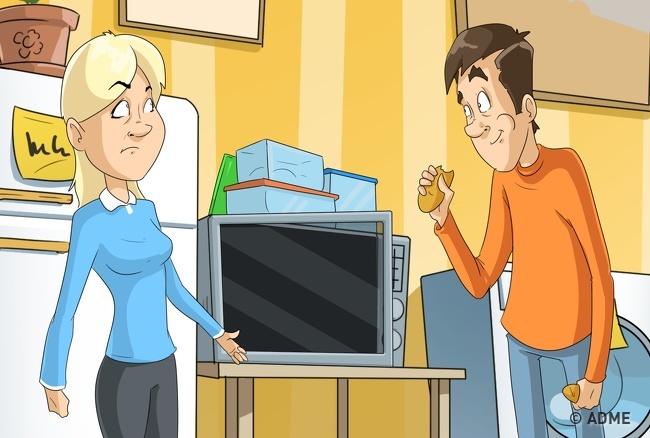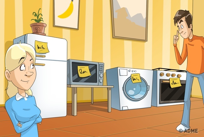 - на холодильнику: «Обід або в духовці, або в пральній машині»;