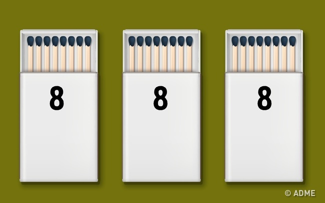 Крок 3: потім з третього коробка перекладаємо 4 сірники в перший і отримуємо по 8 сірників у кожному.