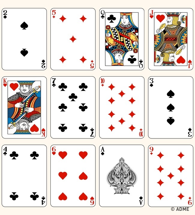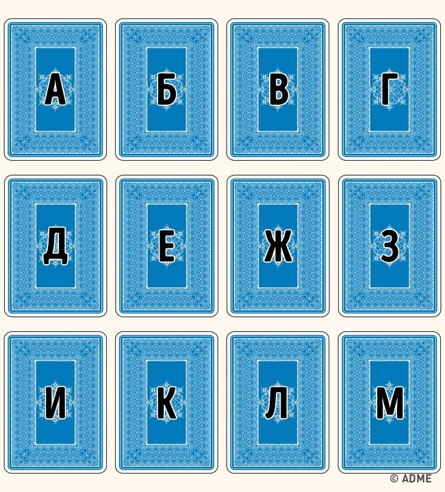 На столі сорочками вгору лежать 12 карт. Вам необхідно дізнатися масть і гідність кожної карти, не перевертаючи їх. При цьому відомі наступні правила: