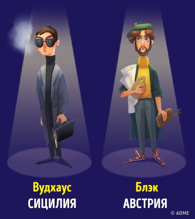 - У 3-й день Фредерік Артур зустрічався з Блеком, а в 5-й — з власником сумки з коштовностями. Відповідно, Блек — художник. А сумка з коштовностями знаходиться у Вудхауса.