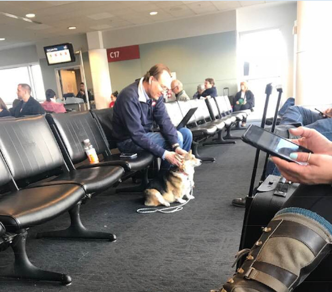 Все сталося в аеропорту, де дівчина з собакою чекала свого рейсу. Раптово собака по кличці Кора кинулася до невтішного чоловікові, який сидів неподалік. Побачивши її перед собою, він не злякався, а, навпаки, розплакався від щастя. Як виявилося, чоловік напередодні втратив свою собаку, а Кора полегшила йому горе втрати.
