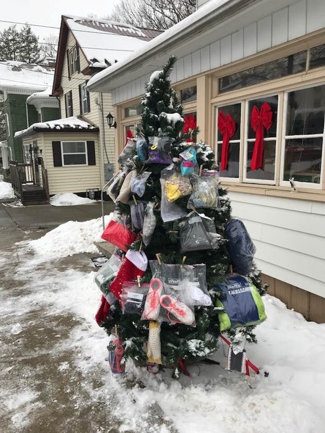 На кожне Різдво господар цього будинку таким чином роздає речі тим, кому вони можуть знадобитися.