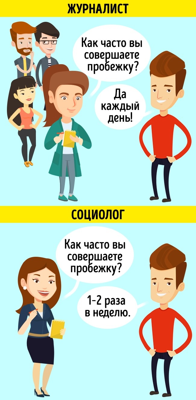 Статистика і опитування — це сильні аргументи, яким довіряють, тому журналісти люблять посилатися на них. Так люблять, що почали проводити свої власні опитування. Чи помічали ви, як багато журнали, газети та інформаційні сайти збирають думки читачів, експертів або випадкових людей, а потім роблять з них висновки? Так от, вірити їм соціологи (це ті люди, які займаються опитуваннями професійно) не радять. І зараз пояснимо, чому.