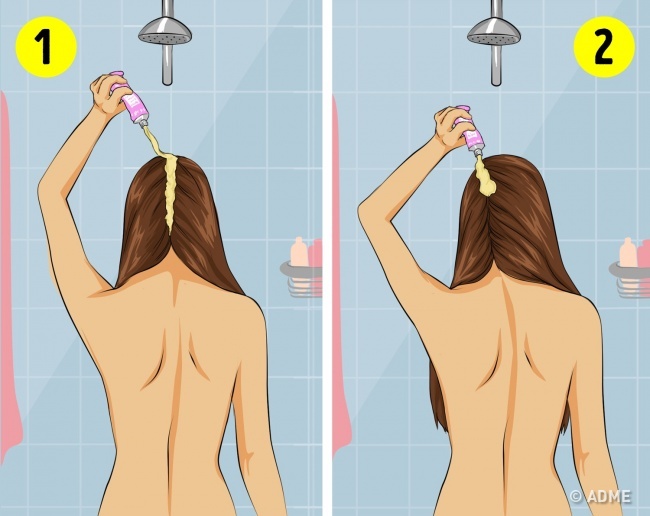3. Змивання повинно займати вдвічі більше часу, ніж нанесення. Стилісти рекомендують змивати шампунь під душем протягом 5 хвилин. Залишилися і висохлі частинки шампуню можуть призвести до тьмяного кольору волосся і появи лусочок на шкірі голови.