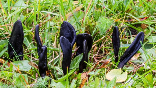 Не менш цікавий і геоглоссум оманливий, відомий як «земляний язик». Ці гриби дійсно нагадують язики, наче ростуть із землі. Вони розселяються сімействами на занедбаних луках, галявинах з невисокою травою і вересових пустках на півночі Америки і в Європі.