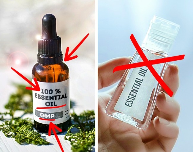 - На етикетці обов'язково має бути написано «100 % натуральне ефірне масло» або 100 % Essential Oil, Pure Essential Oil, Pure and Natural, інші формулювання виключені.