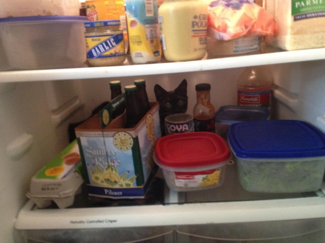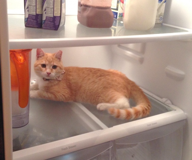 Не впевнений, що більш дивно: кіт у холодильнику або той факт, що в холодильнику тільки молоко