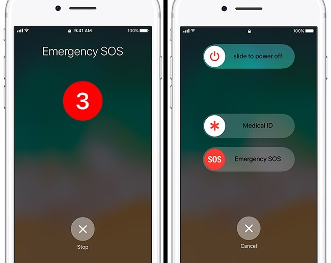 Функція «Екстрений виклик — SOS» в останній версії (8, 8+) iPhone стала ще досконалішою. Якщо активувати в налаштуваннях режим «Автовызов», то після утримання бічної кнопки і однієї з кнопок регулювання гучності почнеться зворотний відлік. Через 3 секунди телефон сам набере номер екстреної служби і відправить повідомлення з поточної геолокацією екстреним контактам, якщо такі були внесені в налаштуваннях.