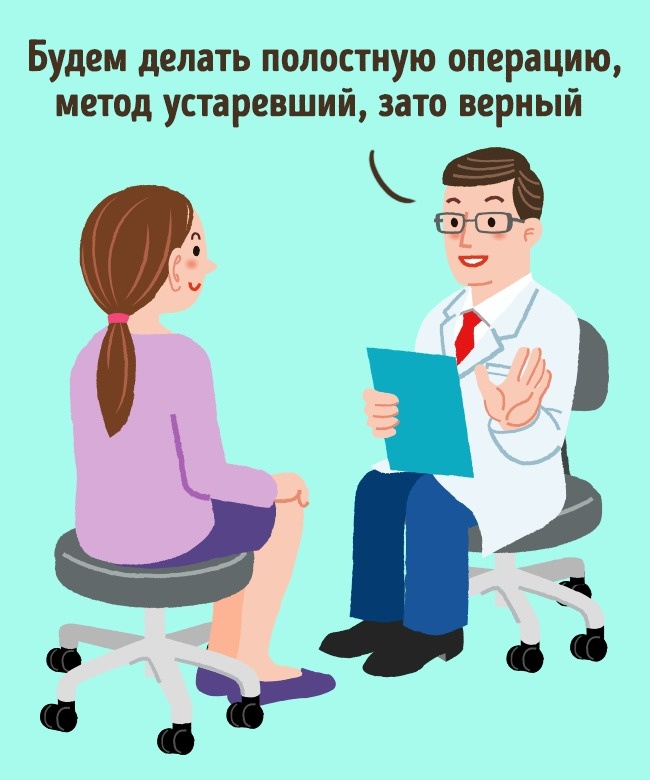 Ви повинні з перших хвилин комфортно відчувати себе поряд з лікарем. Він повинен викликати у вас почуття довіри і безпеки. Це обов'язкова умова, без якого неможливо ніяке лікування. Більше того, ви повинні приймати безпосередню участь у процесі лікування і прийняття рішення. Завдання лікаря — надати вам достатньо інформації для прийняття рішення. Але ніяк не тиснути на вас або залякувати, стверджуючи, що вам загрожує велика небезпека.