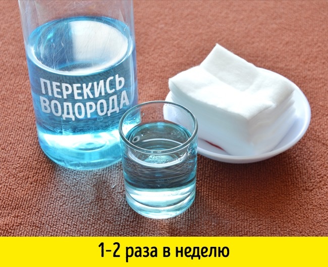 Перш ніж використовувати перекис водню для відбілювання, переконайтеся, що ваші зуби не занадто чутливі. Якщо все в порядку, то можна просто змочити ватний диск перекисом і акуратно протерти зуби. Захоплюватися таким способом не варто, оскільки можна пошкодити емаль.