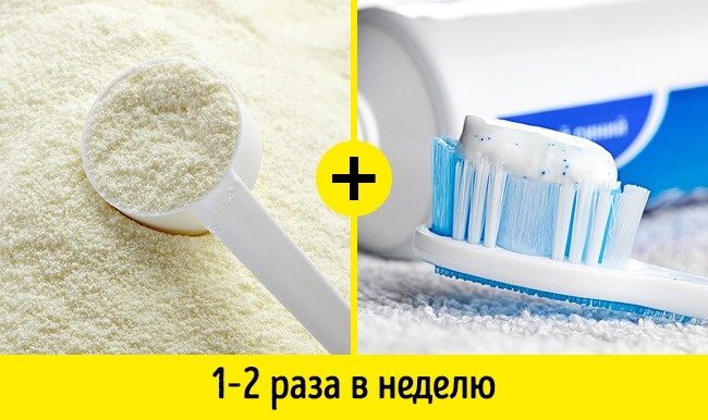 Використання сухого молока не тільки відбілити зуби, але і зробить їх міцніше. Нанесіть на зубну щітку, пасту, а зверху додайте трохи сухого молока і почистіть зуби, як це зазвичай робите.