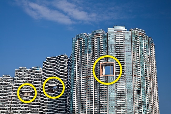 Величезні отвори в будівлях — таку незвичну для європейця архітектуру можна побачити сьогодні в Гонконзі.