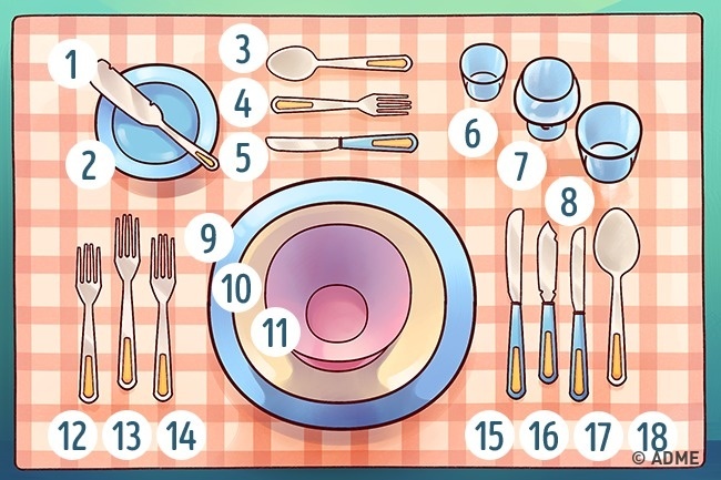 Сервірування стола до вечері — це ціле майстерність, а гармонійне поєднання столового посуду і скатертини, правильного розташування приладів і цікавого декору створять цілісну композицію і неодмінно запам'ятаються гостям. Вилки ліворуч, ножі праворуч, келихи для води і вина — предметів не так багато, зате який ефект. Тут буде доречна кольорова скатертину або доріжка з візерунком.