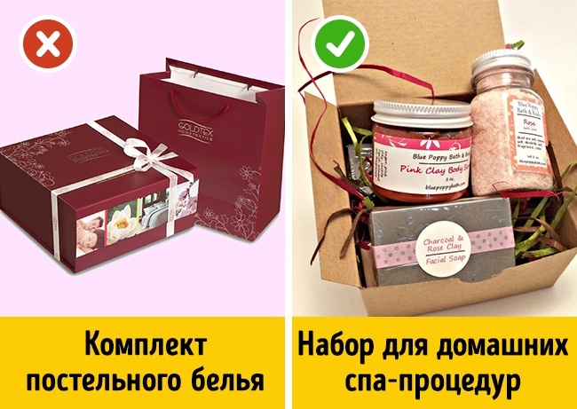 Вдалою заміною стандартного комплекту білизни послужить набір для домашніх спа-процедур — кожній дівчині хочеться розслабитися після довгої робочого тижня.