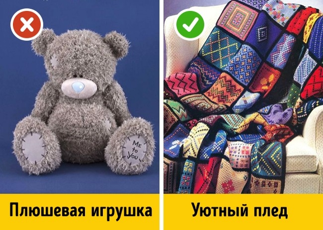 Плюшевих ведмедиків можна замінити затишним пледом або теплим домашнім костюмом з небанальним принтом.