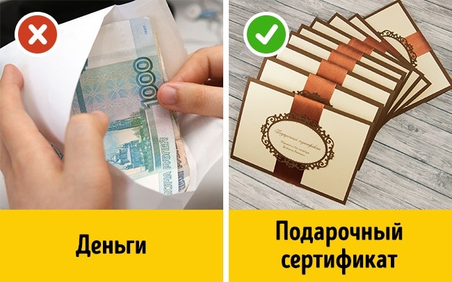Гроші в якості подарунка найбільш доречні на весіллі. Відмінна ідея — подарунковий сертифікат, наприклад, на фотосесію, в хороший ресторан або інтернет-магазин.
