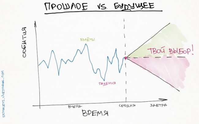 Нарешті, необхідно розуміти, що минуле безпосередньо не впливає на майбутнє і кожен момент, під назвою «справжнє», є потенційною точкою зміни життєвої траєкторії. В якому напрямку вона піде завтра — це твій власний вибір.