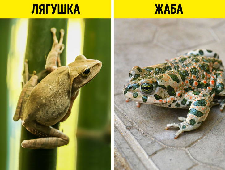 У жаб більш короткі ноги порівняно з жабами, тому що їм не доводиться стрибати так високо і часто, як їх родичам. Також у жаб більш товста і суха, але менш гладка шкіра.