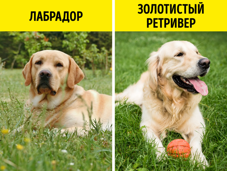 У лабрадорів шерсть коротша, ніж у золотистих ретриверів. Лабрадор — більш товариська і активна порода, в той час як золотисті ретривери трохи спокійніше.