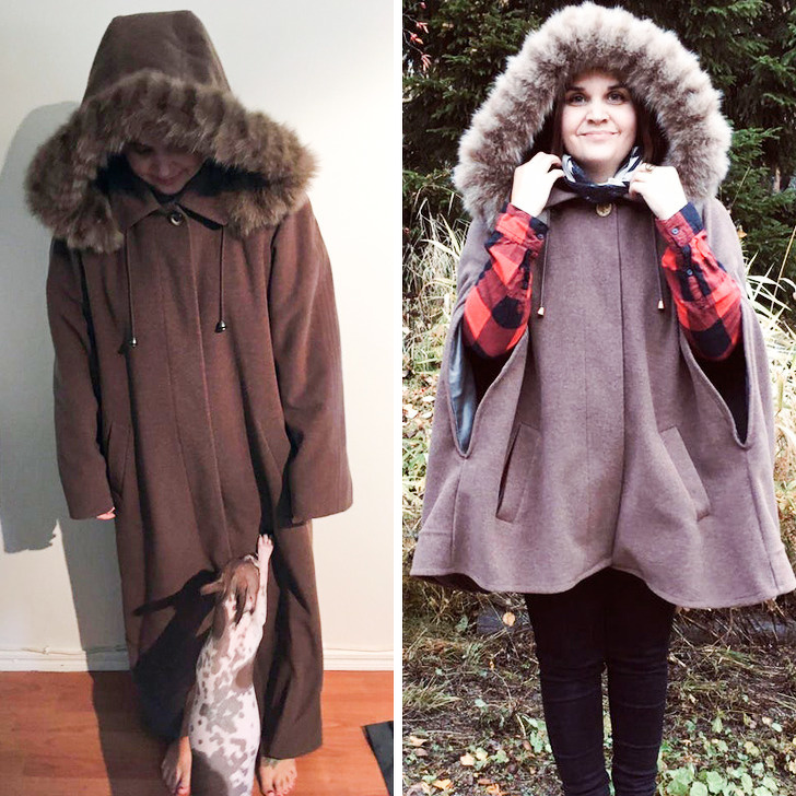 «Давно хотіла накидку, але все, що я змогла знайти, — це сумне пальто. Після переробки я його обожнюю — це як ходити в ковдрі, але виглядати при цьому стильно»