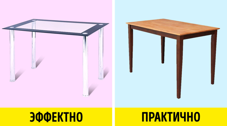 І не варто забувати про те, що від скляних столів набагато більше шуму, ніж від їх дерев'яних родичів. Уявіть, який дзвін посуду буде лунати по всій квартирі. Загалом, перед покупкою такої меблів треба ще раз подумати, чи ви згідні миритися з цими недоліками.