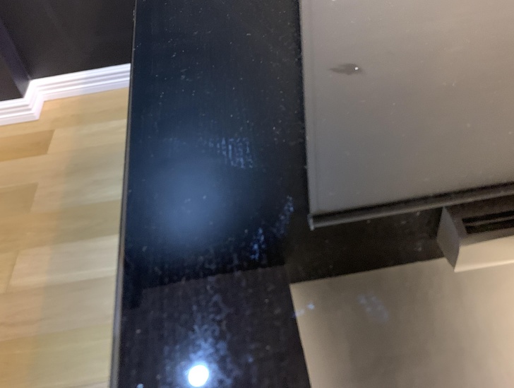 Ми вже не говоримо про те, що після використання стіл треба буде ретельно протирати, щоб домогтися первозданної краси. Інакше поверхню буде виглядати ось так: