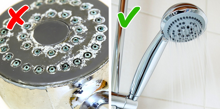 В мережі повно лайфхаков про те, як видалити вапняний наліт. Однак це можна зробити без особливих зусиль: у більшості сучасних насадок для душу є можливість регулювати силу потоку. Якщо раз в тиждень повертати регулятор і змінювати напір, то відкладення не утворюються взагалі або обсиплються під час маніпуляцій.
