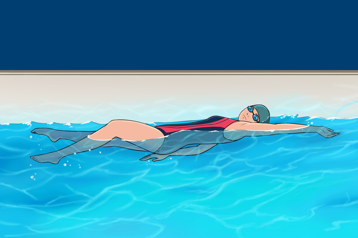 - Плавання на спині допомагає «включити» постуральную мускулатуру, що автоматично покращує поставу і підтягує шкіру на стегнах. Після сеансу плавання корисно прийняти контрастний душ, який закріпить результат.