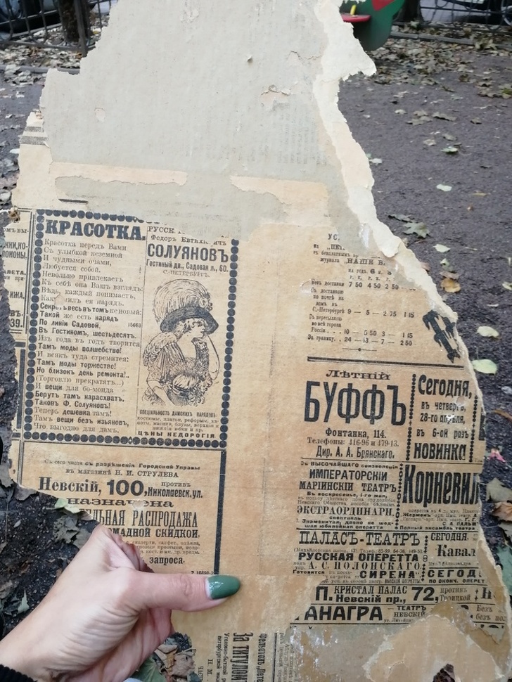 Газети початку ХХ століття, а також 8 куль від револьвера в стіні під ними — досить незвичайні знахідки, які були зроблені під час ремонтних робіт одній із квартир в Санкт-Петербурзі