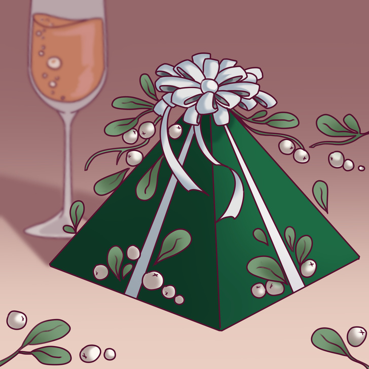 4. У великій коробці у формі цукерки лежать не цукерки, а ялинкові іграшки.